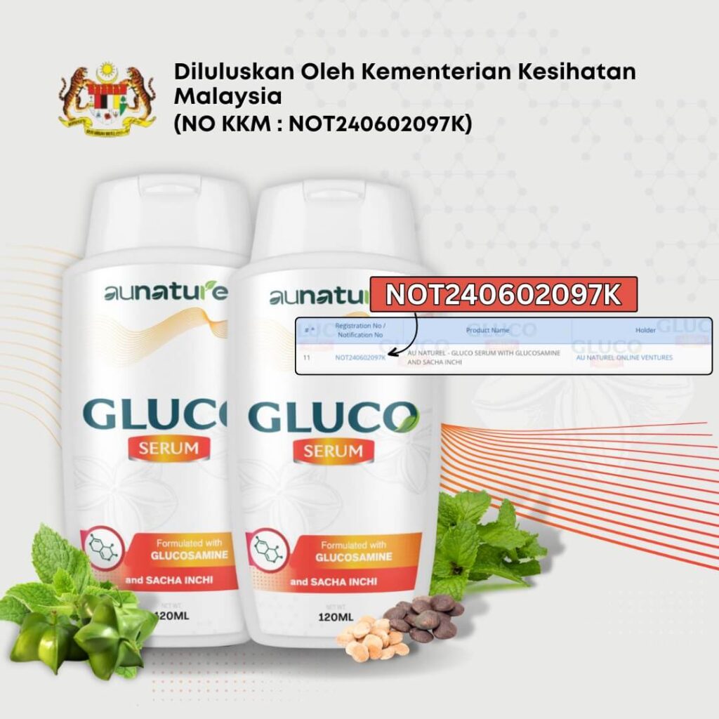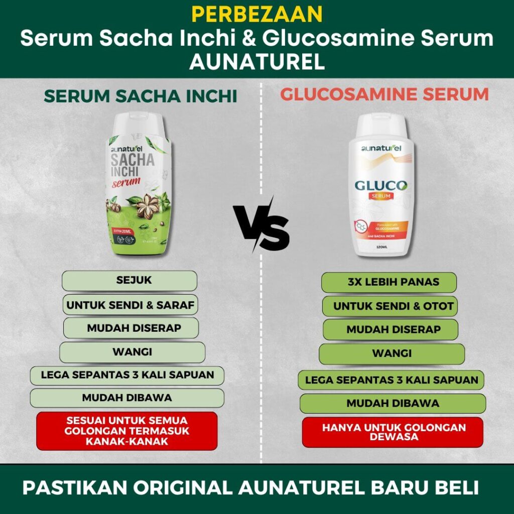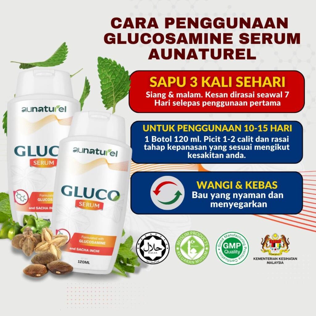 GlucoSerum Sacha Inchi AuNaturel Gabungan Lengkap Minyak Sacha Inci, Glucosamine, Minyak Wintergreen, Glycerine, Minyak Pudina, Menthol, Camphor