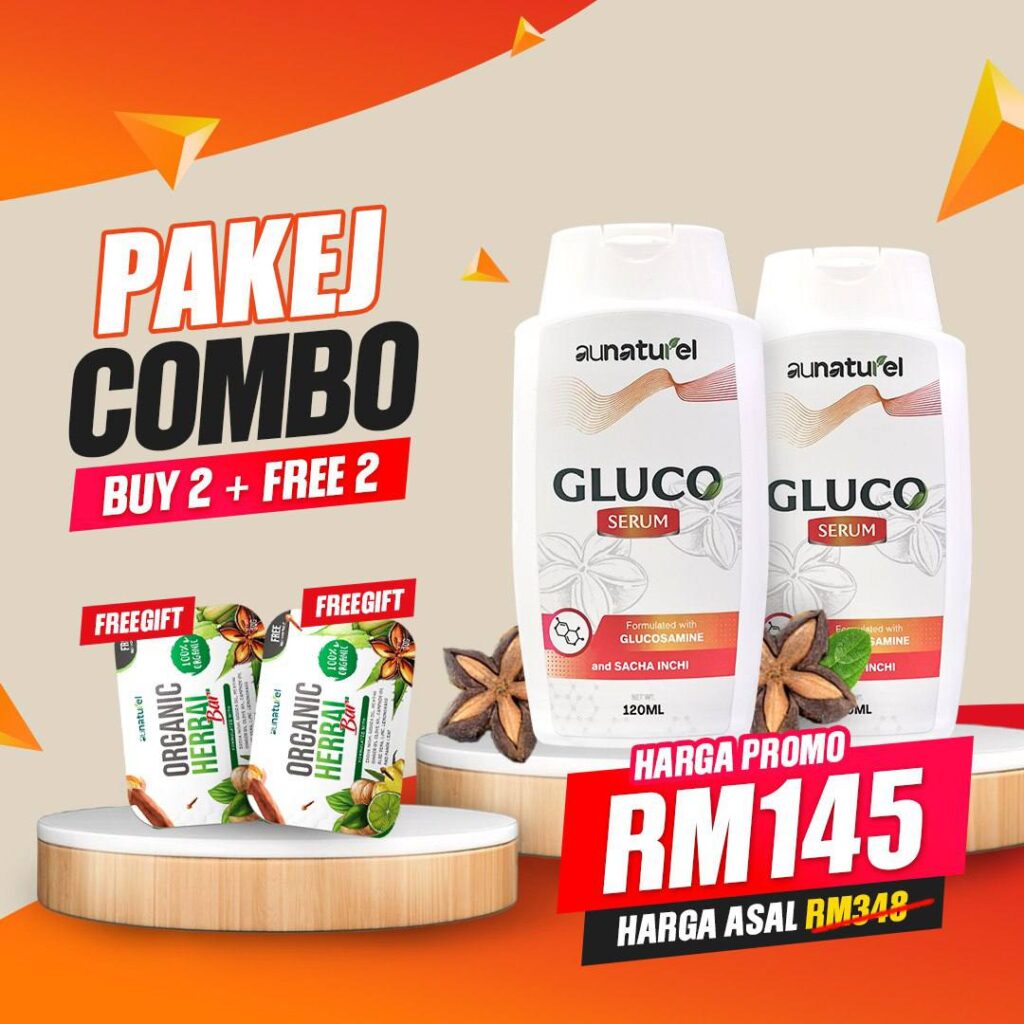 GlucoSerum Sacha Inchi AuNaturel Gabungan Lengkap Minyak Sacha Inci, Glucosamine, Minyak Wintergreen, Glycerine, Minyak Pudina, Menthol, Camphor
